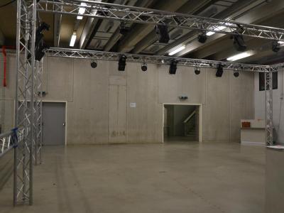 Grotere fuiven, optredens of evenementen met publiek. De zaal is ongeveer 250 m² groot en biedt plaats aan maximaal 367 personen.